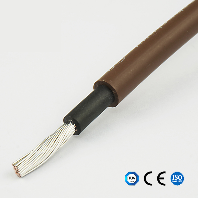 টিইউভি EN50618 H1Z2Z2-K স্ট্যান্ডার্ডের সাথে সামঞ্জস্যপূর্ণ প্রিমিয়াম মানের বাদামী সৌর তার। ফোটোভোলটাইক অ্যাপ্লিকেশনগুলিতে উচ্চতর পারফরম্যান্সের জন্য এক্সএলপিই / এক্সএলপিও বিচ্ছিন্নতার সাথে 4 মিমি 2 টিনযুক্ত তামার কন্ডাক্টর বৈশিষ্ট্যযুক্ত।